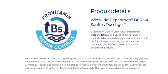 Bepanthen® DERMA Sanftes Duschgel reinigt trockene und empfindliche Haut sanft und gründlich.