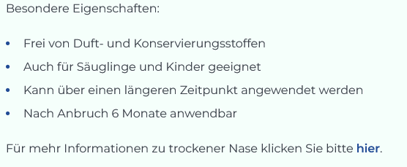 ist Dexpanthenol enthalten. Dabei wird zusätzliche Feuchtigkeit gespendet, während sich ein feuchthaltender Schutzfilm hauchdünn über die Nasenschleimhaut legt, sodass sich diese regenerieren