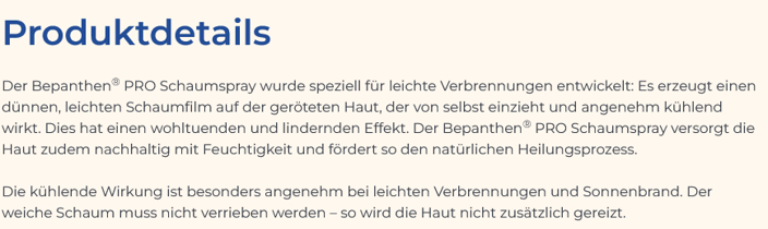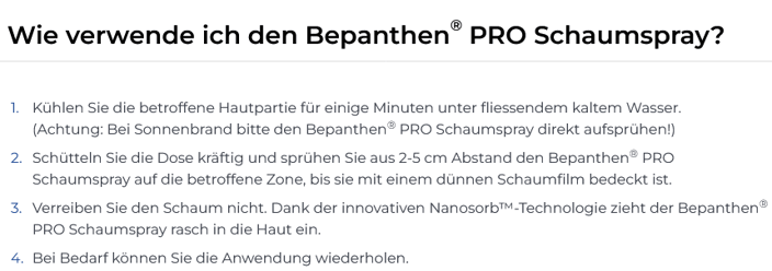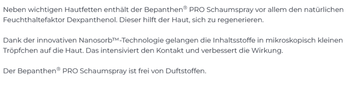 Der Bepanthen® PRO Schaumspray kühlt wohltuend und versorgt und pflegt die Haut mit Feuchtigkeit.