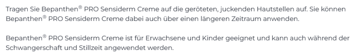 Die Bepanthen® PRO Sensiderm Creme hilft schnell und zuverlässig bei juckenden und gereizten Hautstellen.