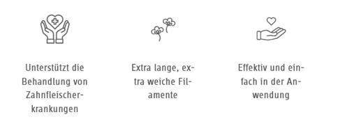 Feinste Filamente auf den Interdentalbürsten made in Switzerland – für die Sekundärprophylaxe oder bei grossen Interdentalräumen.