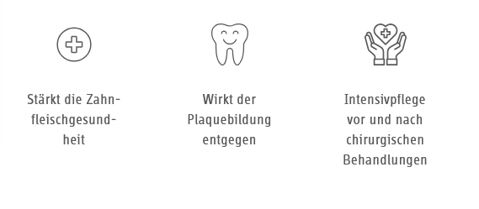 Chlorhexidin(CHX)-Konzentration 0.2 Prozent: Perio plus Forte kommt in der kurzzeitigen Intensivpflege vor und nach invasiven dentalmedizinischen Behandlungen zum Einsatz. Zuverlässig hochwirksam.