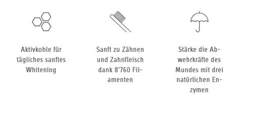 Eine Zahnpasta, schwarz wie die Nacht. Das macht die Aktivkohle, und sie sorgt für Whitening – auf sanfte Weise. Denn sie schmirgelt nicht, sondern saugt unschöne Verfärbungen einfach auf.