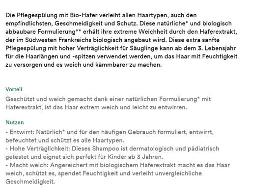 Diese natürliche* Pflegespülung mit hoher Verträglichkeit für Säuglinge entwirrt, schützt und macht das Haar der ganzen Familie weich.