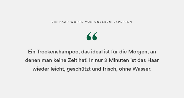Das Klorane Trockenshampoo mit Hafer wurde speziell für die Haarwäsche ohne Wasser entwickelt. Die neue Formulierung kombiniert weichmachenden Haferextrakt mit ultra-absorbierenden Pudern, um das Haar zu reinigen, zu schützen und für 12 Stunden zu revitalisieren, in nur 2 Minuten, für ein 100 % unsichtbares Finish. Eine ideale Lösung für das Haar, die ihm Frische und Leichtigkeit zurückgibt. Garantiert rückstandsfrei. Für Männer und Frauen gleichermassen geeignet.