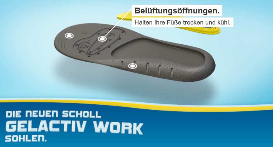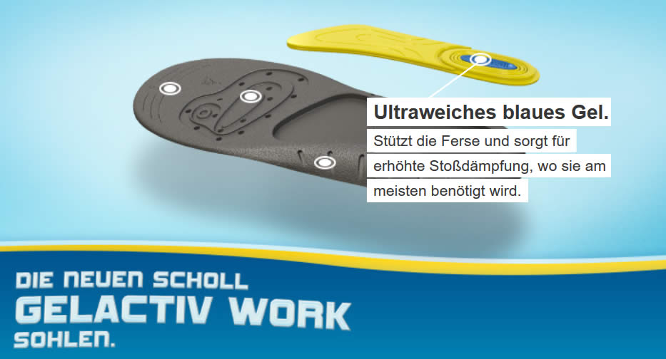 Die GelActiv Technologie dämpft Ihre Schritte und bietet langanhaltende Unterstützung für Ihre Füße, besonders, wenn Sie arbeitsbedingt mehrere Stunden auf den Beinen verbringen: für Arbeitstage,