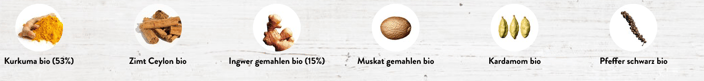 *Kurkuma Paste: 1 gehäufter EL (ca. 8 g) Kurkuma-Latte Mischung mit 30 ml Wasser verrühren, zum Köcheln bringen, bis eine Paste entsteht. Paste im Kühlschrank aufbewahren.