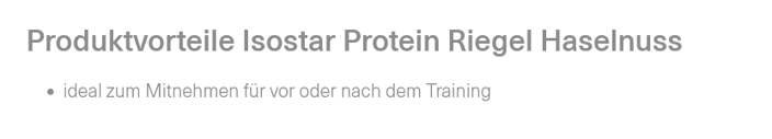 Isostar High Protein Riegel Haselnuss, hergestellt aus hochwertigem Milcheiweiss, ist eine gute Ergänzung zum Isostar High Protein oder Isostar Whey Protein Drink.