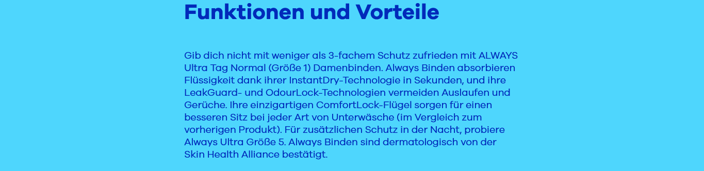 - Always Ultra Damenbinde verfügt über OdourLock-Technologie, die Gerüche neutralisiert