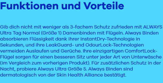 - Always Ultra Damenbinde verfügt über OdourLock-Technologie, die Gerüche neutralisiert