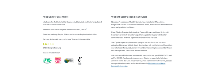 Dicke Binden ohne Flügel, für leichtere Monatsblutung.