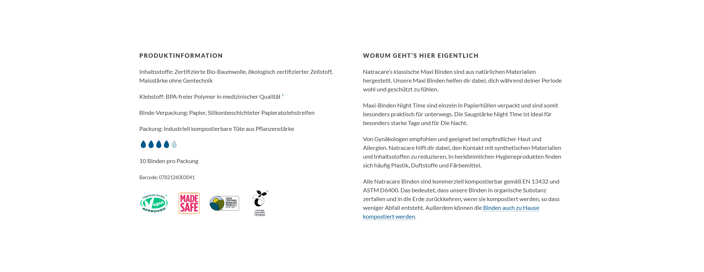 Dicke Binden ohne Flügel, für starker Monatsblutung.