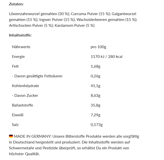 Gerne kannst Du das Pulver auch mit unseren anderen BitterLiebe Produkten kombinieren, z.B. mit den BitterLiebe Kapseln und Tropfen.