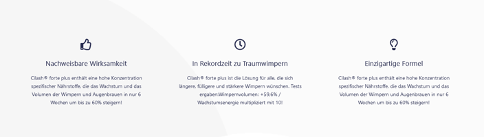 Cilash® forte plus ist ein exklusives Serum, das Ihre Wimpern mit einer hohen Konzentration spezifischer Wirkstoffe versorgt, um deren Wachstum und Schönheit zu fördern. Warten Sie nicht länger, um Ihr Umfeld mit noch nie dagewesen Ergebnissen zu beeindrucken.
