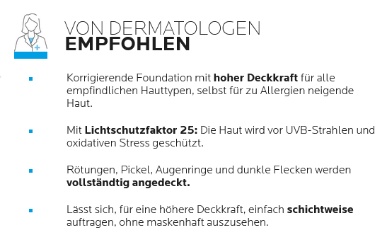 Für die gewünschte Deckkraft können mehrere Schichten des Make-up Fluids aufgetragen werden. 1 Schicht für ein natürliches Hautfinish, 2 Schichten für eine stärkere Deckkraft auftragen."