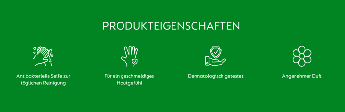 Die Flüssigseife von DETTOL ist SANFT ZUR HAUT und STARK GEGEN BAKTERIEN.