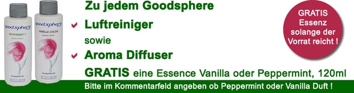 Alle Goodsphere STANDARD Essenzen sind nicht brennbar, beinhalten keinen Alkohol, und sind aus natürlichen botanischen Extrakten hergestellt.
